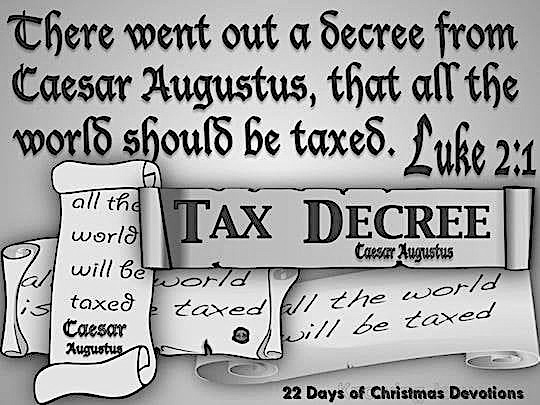 Incredibly, God used the ruler of the civilized world—Caesar Augustus—to bring about the birth of the Messiah in Bethlehem. Although the Bible teaches that heavy taxation can destroy a nation (Proverbs 29:4 ESV), in this incident, it was used by God to fulfill the prophecy of the ancient Prophet Micah. God’s use of the Roman Caesar and the Roman tax to bring to pass His plans and purposes speaks volumes to us of the providence of God.